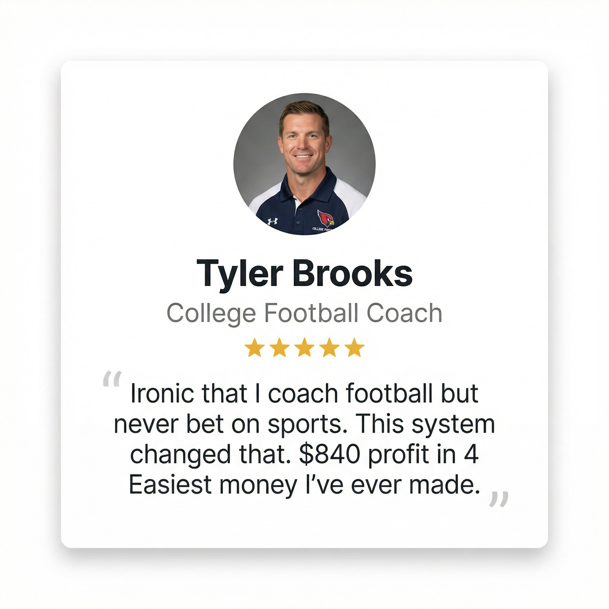 Here's the truth: no system wins 100% of the time. Professional sports bettors win 53-55% of their bets and make fortunes doing it. Our system is built on the same professional risk management principles. You'll learn proper bankroll management so that even when you have losing days (and you will), you're still profitable over time. Plus, you're protected by our 30-Day Money-Back Guarantee, if you follow the system and aren't satisfied, we'll refund every penny.