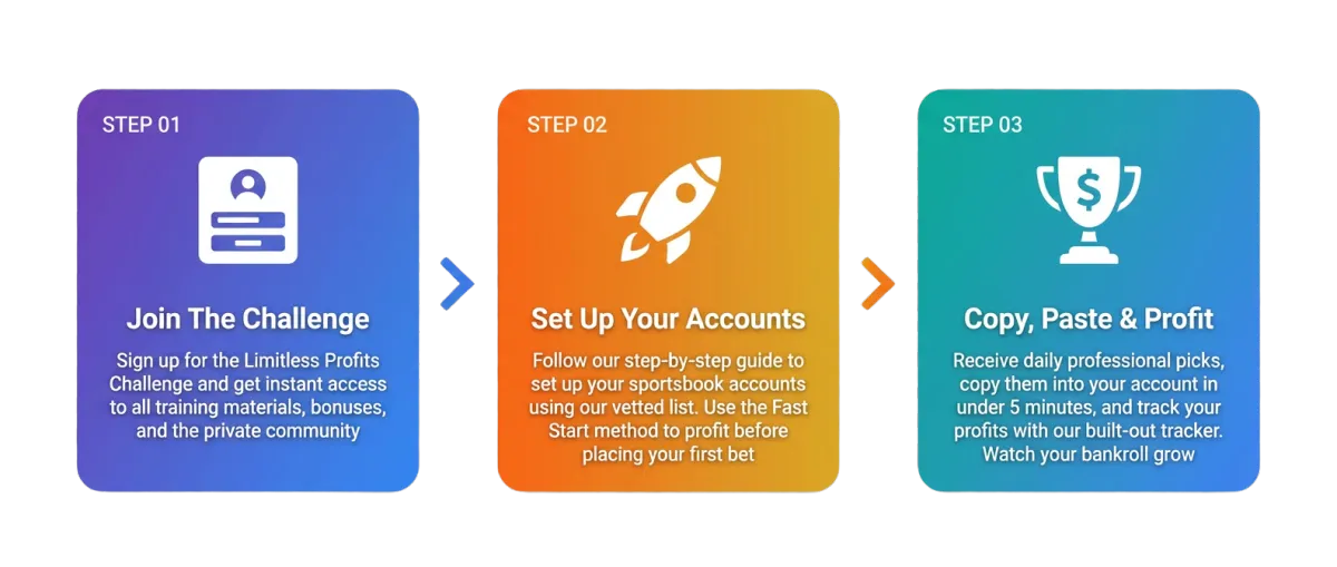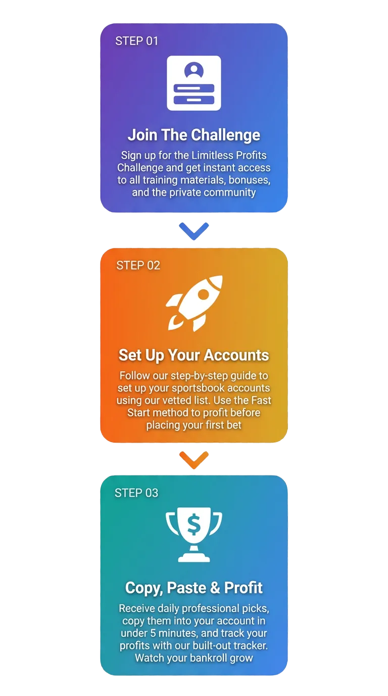 The Limitless Profit Challenge is a done for you blueprint to profiting like a professional sports bettor from day 1.